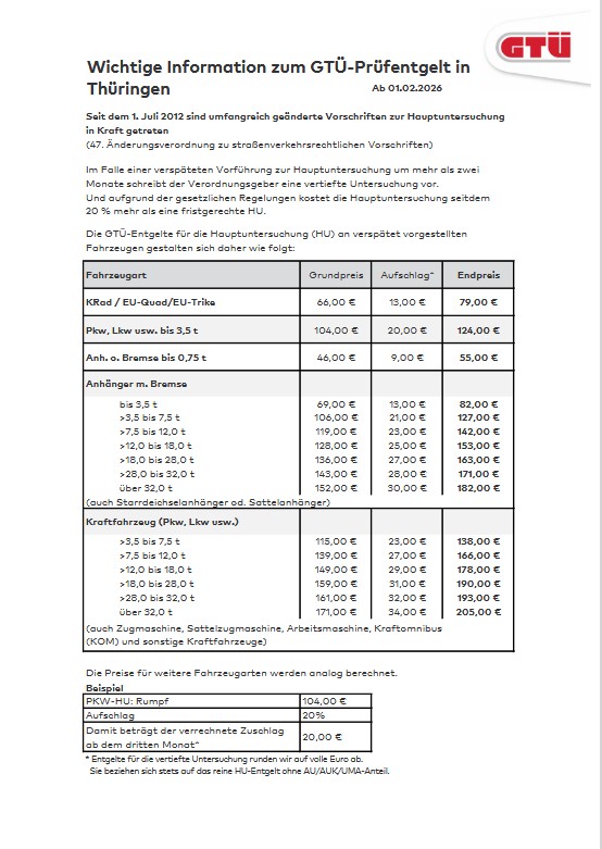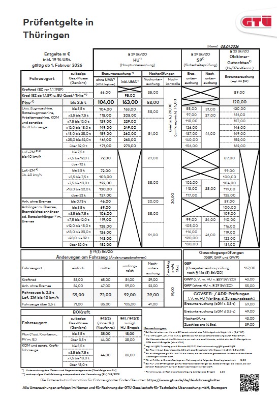 Prüfentgelte Thüringen ab 01.02.2026